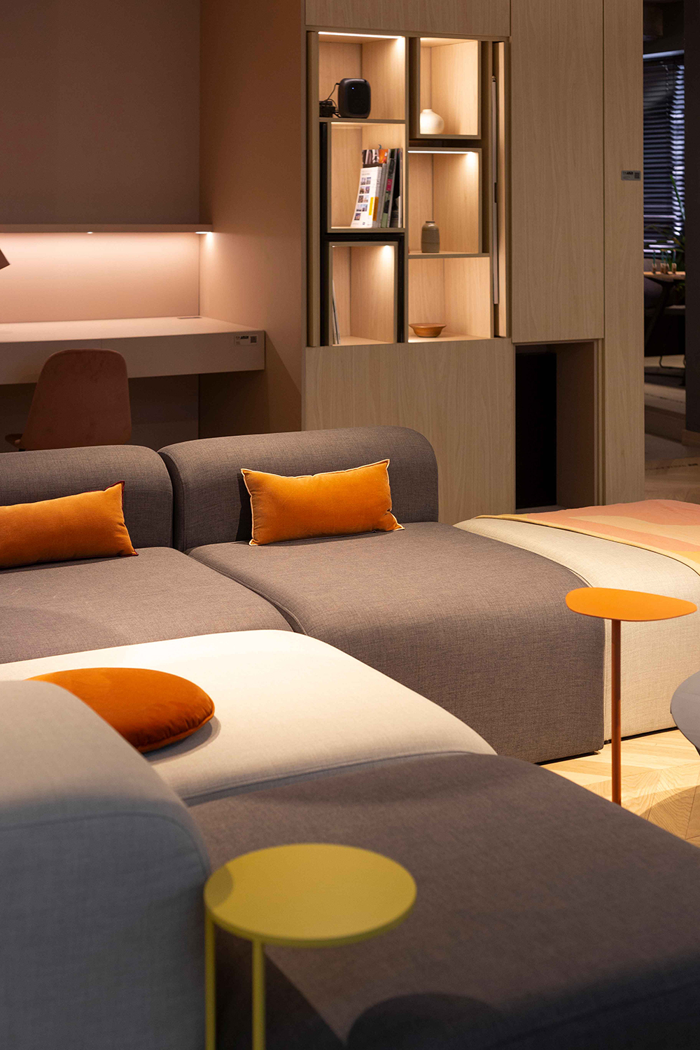Por el contrario, cuando las cajas se abren y se despliega el departamento, se ven colores y formas que reflejan la personalidad del usuario, haciéndolo más personalizado y propio.