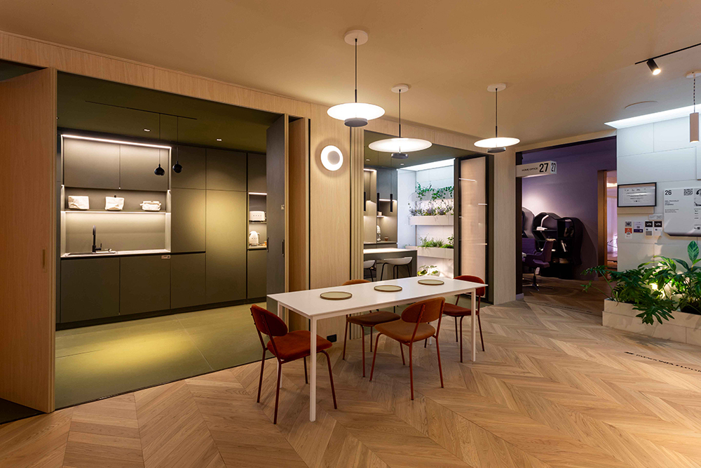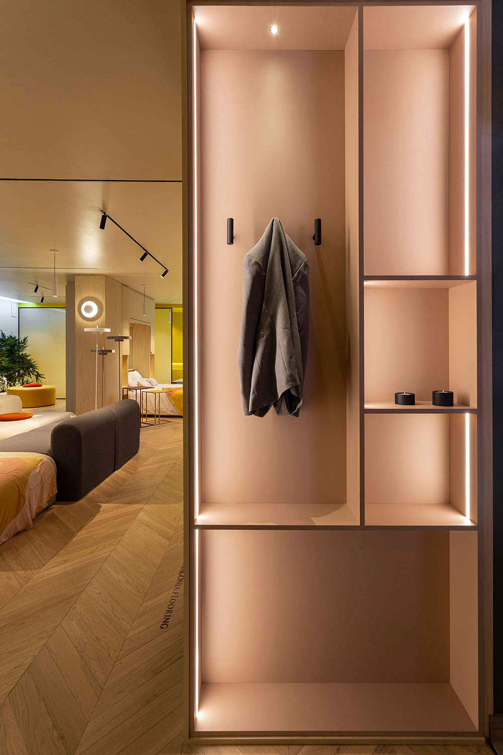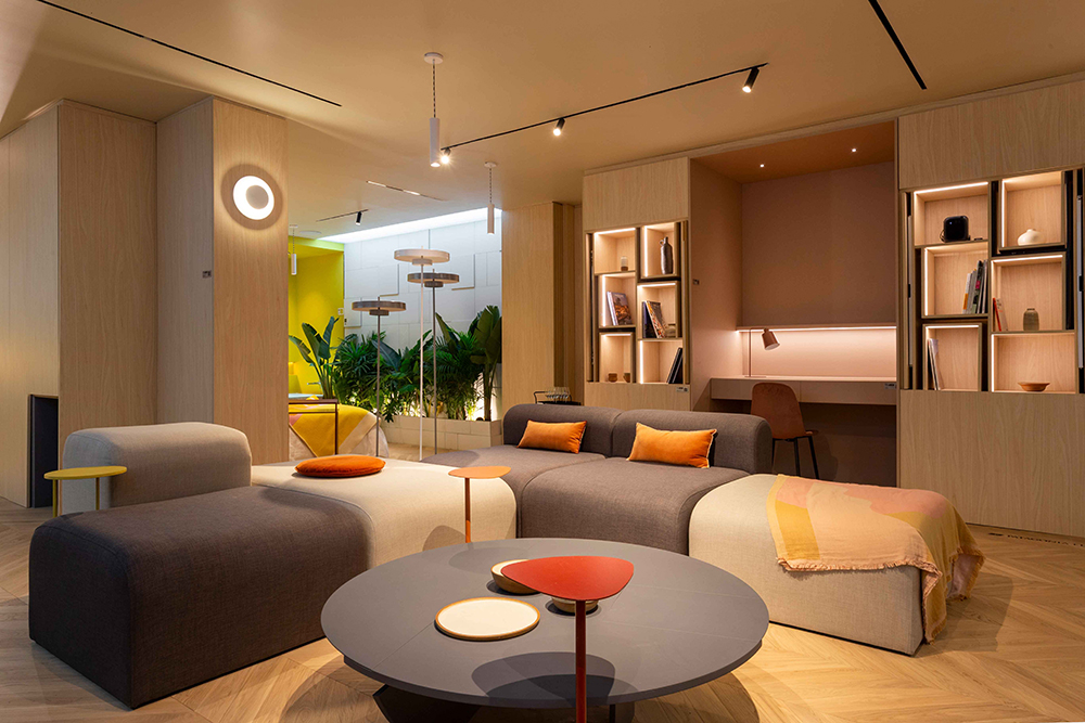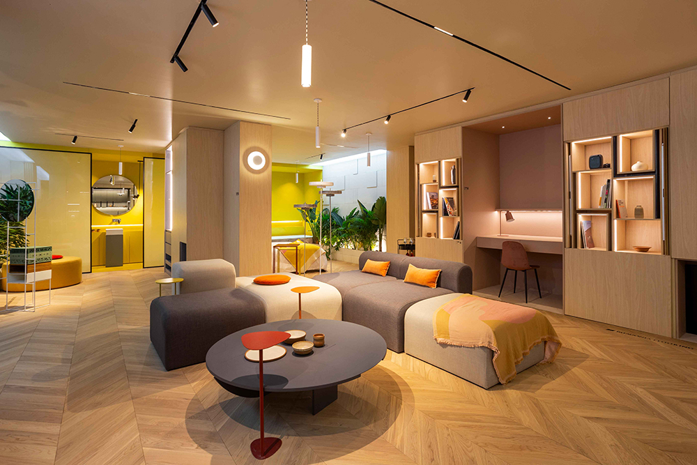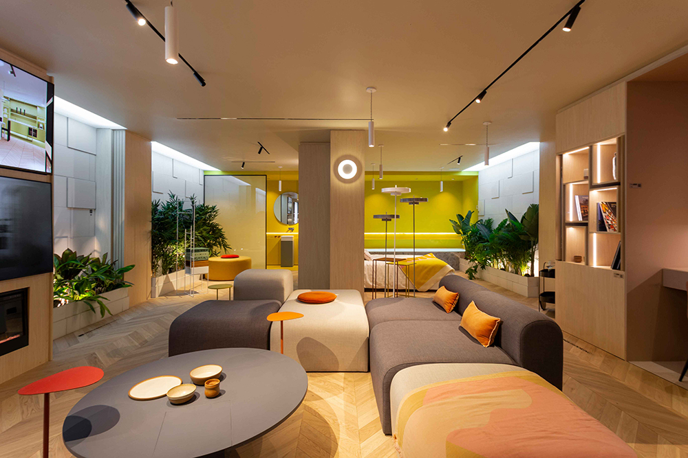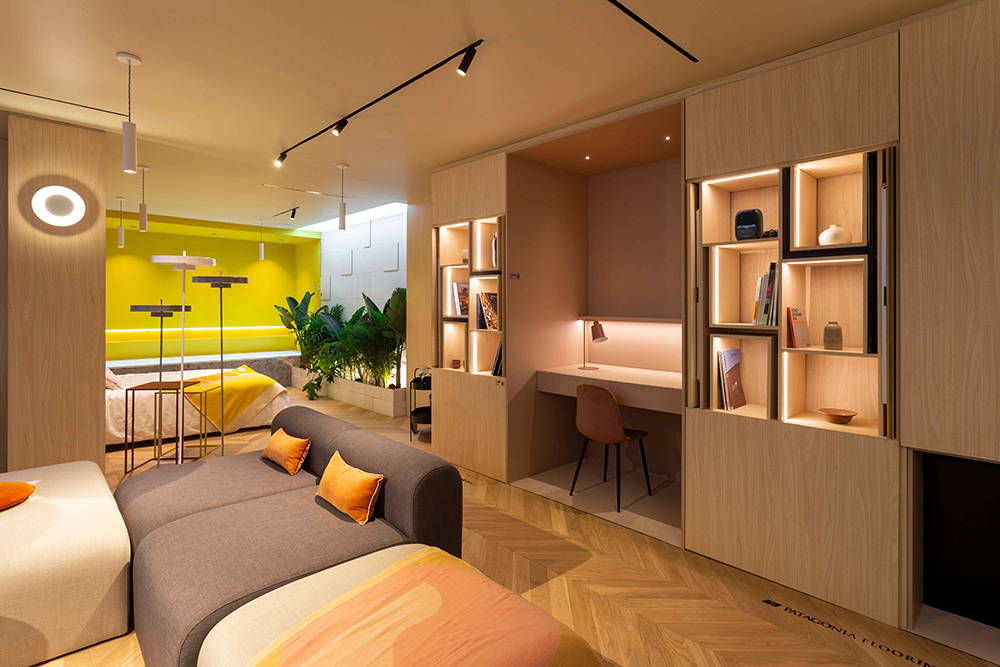 Por el contrario, cuando las cajas se abren y se despliega el departamento, se ven colores y formas que reflejan la personalidad del usuario, haciéndolo más personalizado y propio.