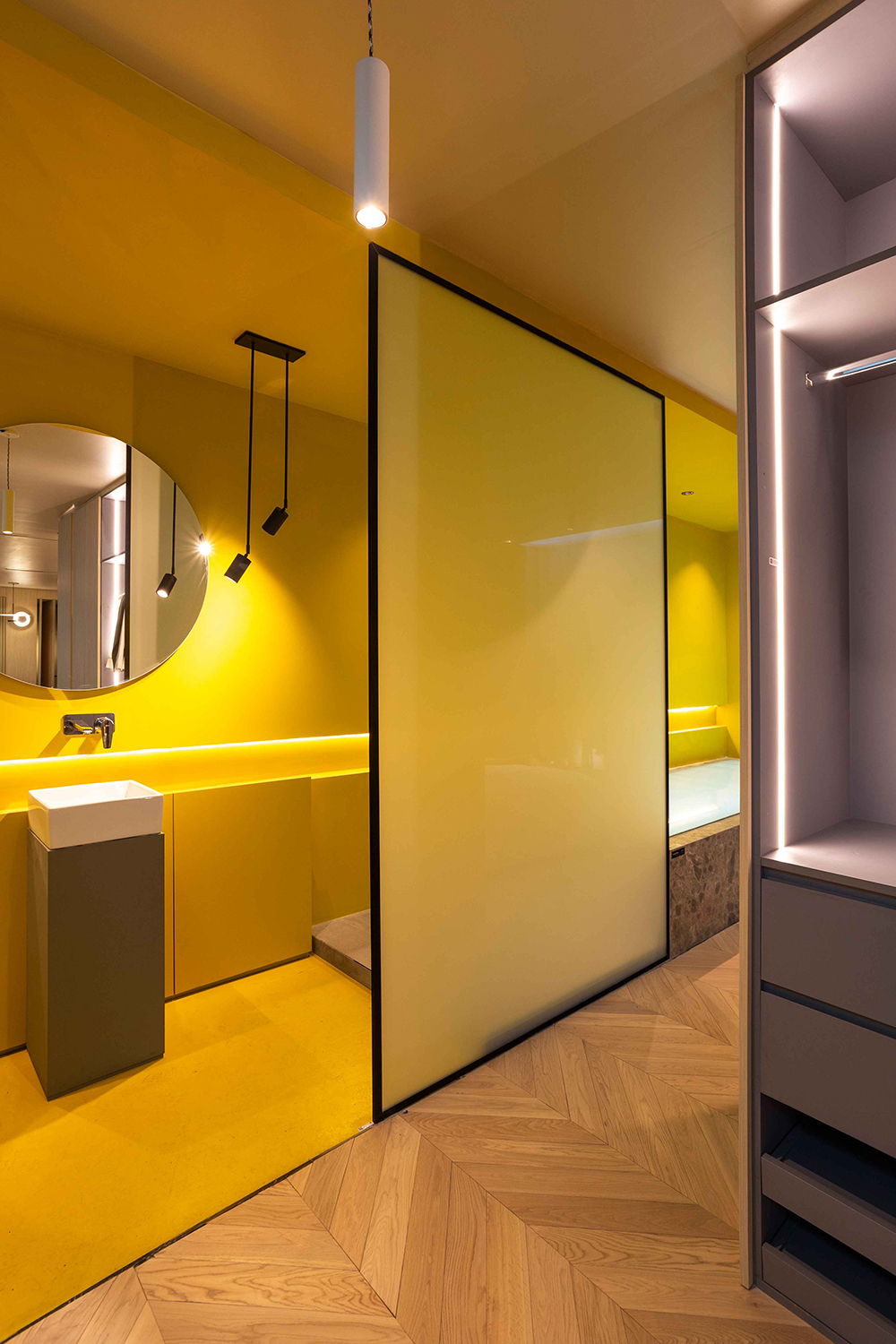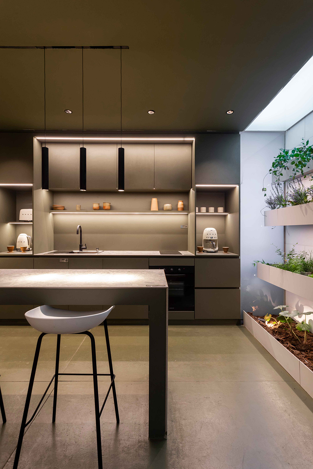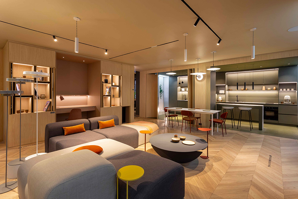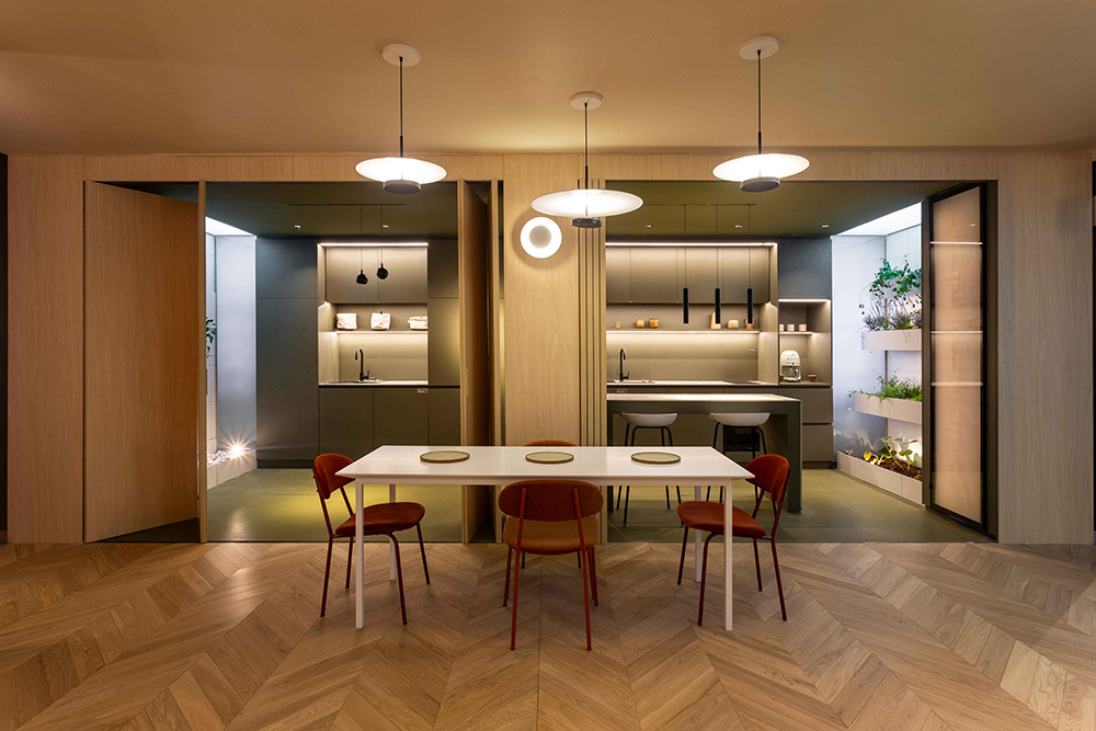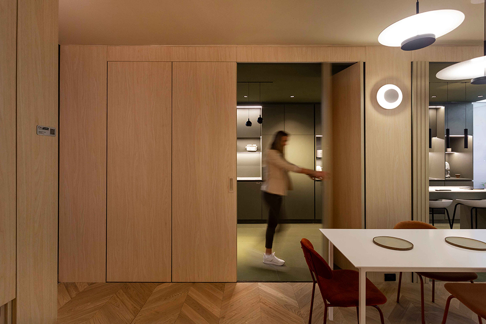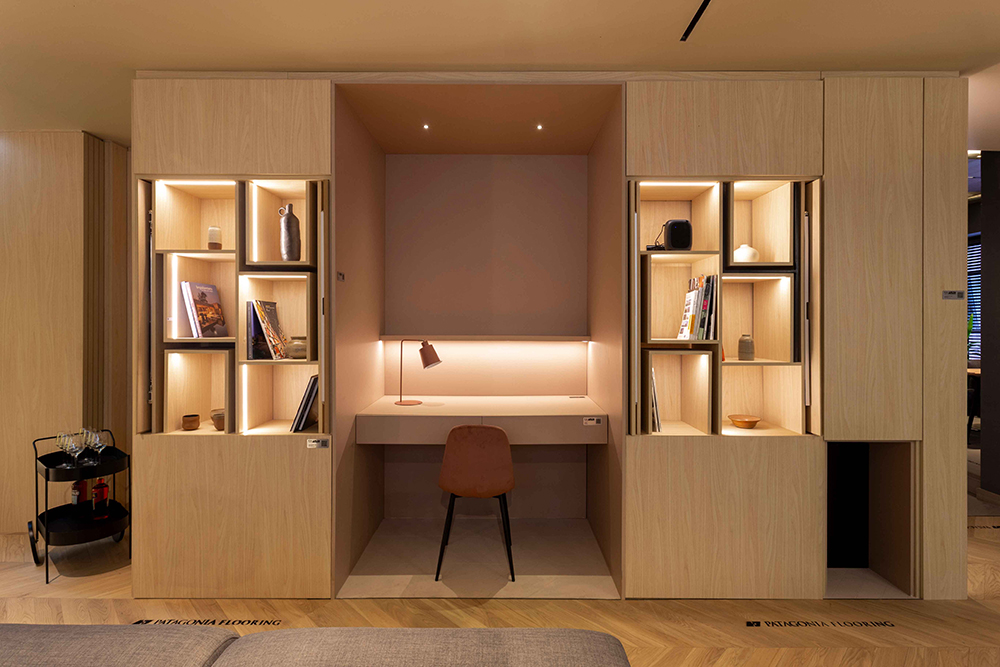 Este concepto es un guiño a la premisa de Mies Van der Rohe de proveer “la mayor libertad posible en el modo de utilizar los espacios” y de procurar “espacios fluidos” en una caja, que como las de Mies “menos es más”: de una, salen muchas más.
